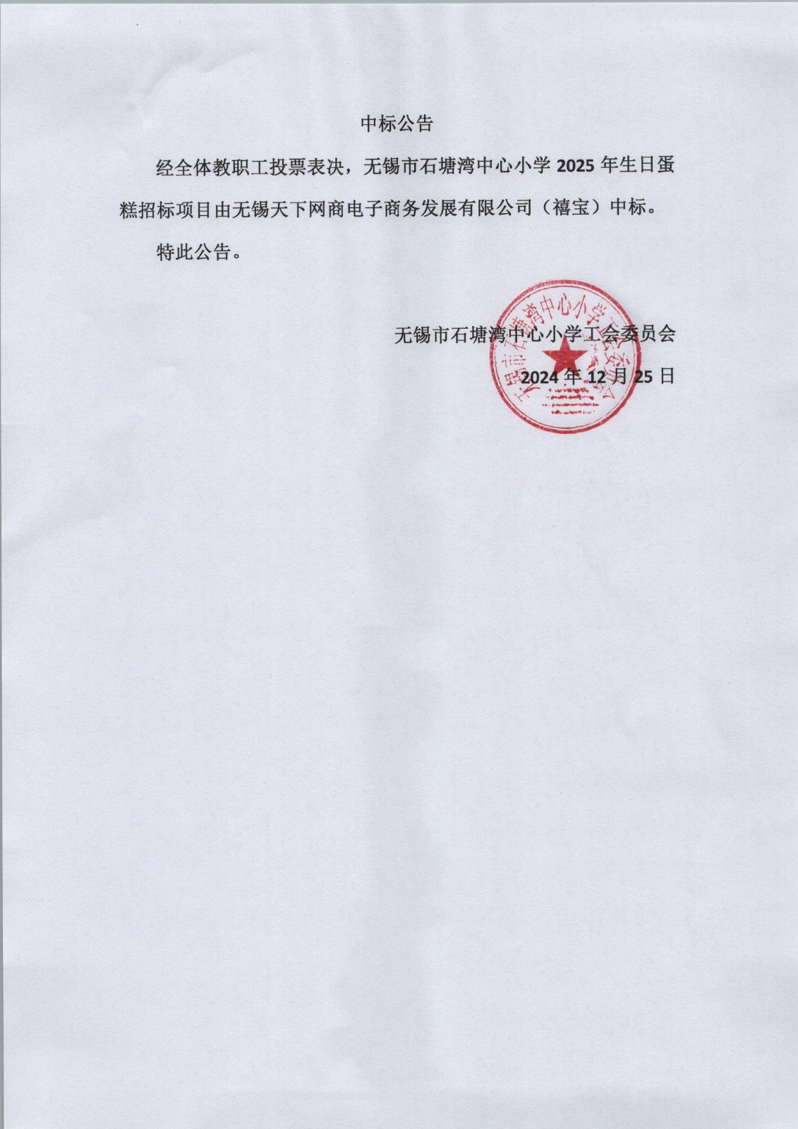 • 生日蛋糕中标公告